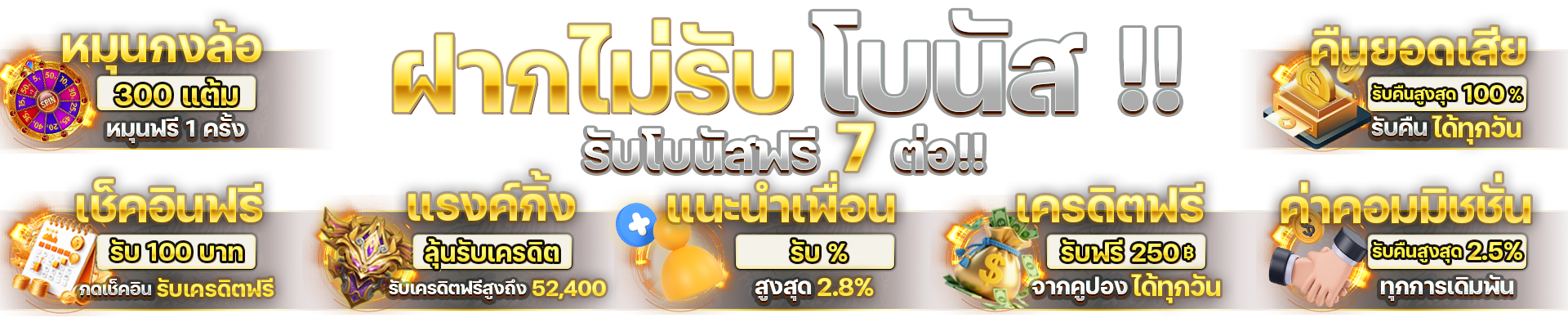 ตอบ : - โบนัสต้อนรับสมาชิกใหม่ 100% - คืนยอดเสีย 10% ทุกสัปดาห์ - แนะนำเพื่อนรับค่าคอมมิชชั่น - โบนัสเติมเงินรายวัน - กิจกรรมแจกรางวัลพิเศษ